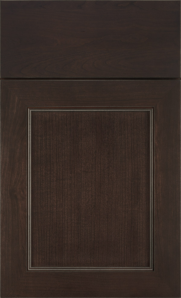 Right in line with design forecasts calling for warm complements to cool neutrals, this warm, dark brown Cherry cabinet finish/color is specially formulated with gray undertones to enhance trend-forward interior colors.